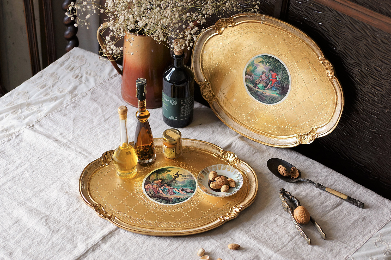 佛羅倫斯人有許多自文藝復興時期傳承下來源於生活的手工藝,木托盤絕對是不容錯過的經典之一 !他們有著世代相傳的技術本領,為你推薦【PESCARISSI百年木藝工坊】(我們已引進此佛羅倫斯品牌10多年,木托盤是受客人喜愛好評回購率高的五星質優品)作品源於文藝復興傳統並堅持用傳承了三代與百年前相同的古老工藝技法製程(全程百分百義大利製作),與畫師精湛的手繪圖紋及最後由資深藝師做特殊手工仿舊處理,每個步驟蘊含了義大利傳統匠人的手工力量,如此用心是只想成就一件有老手感韻味的佳作,擁有一件美好的手工托盤,是有了每天都能使用的藝術品,把文藝復興的魅力都帶進日常。